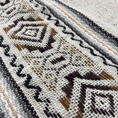 キャンプや音楽フェスなど、アウトドアでも活躍します。普段使いも、もちろんかっこいい。 大きな作りなので、そのまま毛布代わりにもなりそうです。 100%ウールなので、しっかりとしていて持つとやや重さを感じますが、羽織るとそれ程、重さは感じません。 丈夫な安心感がありますね。