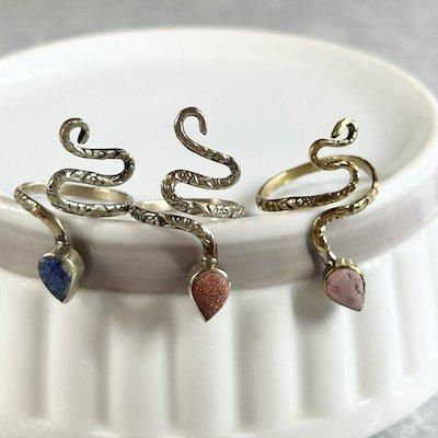 【大人気アクセサリー】ヘビの天然石リング(ペルー天然石)