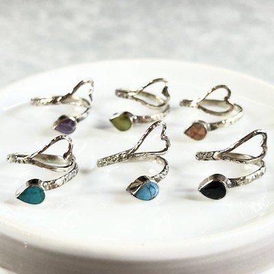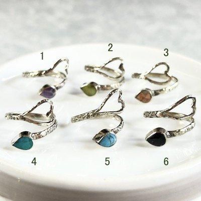 【大人気アクセサリー】ヘビハートの天然石リング(ペルー天然石)