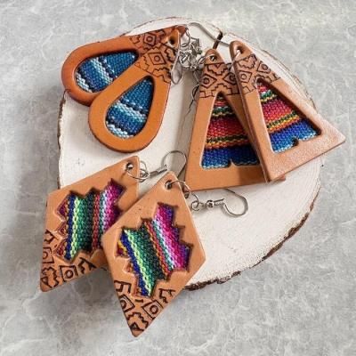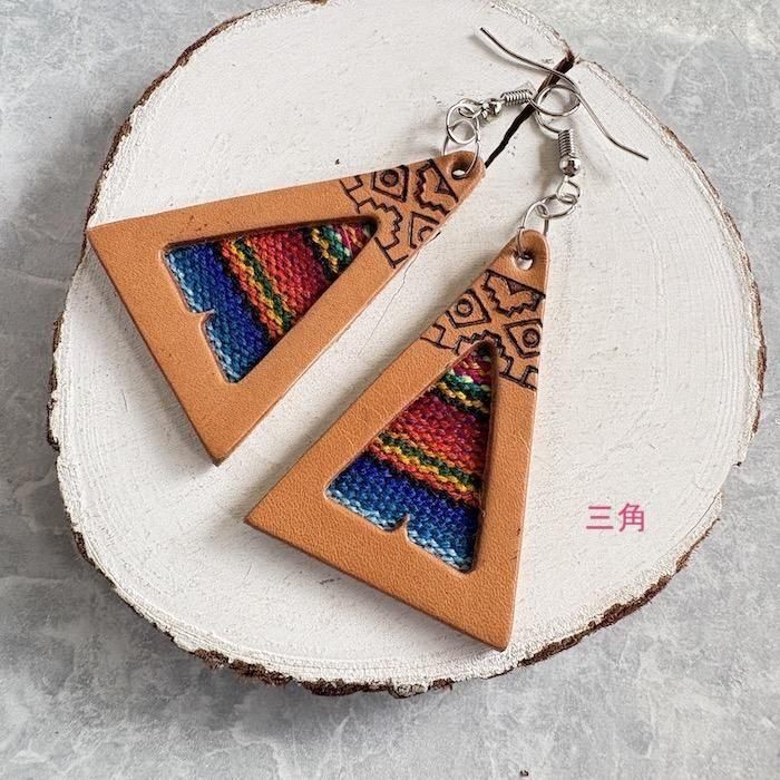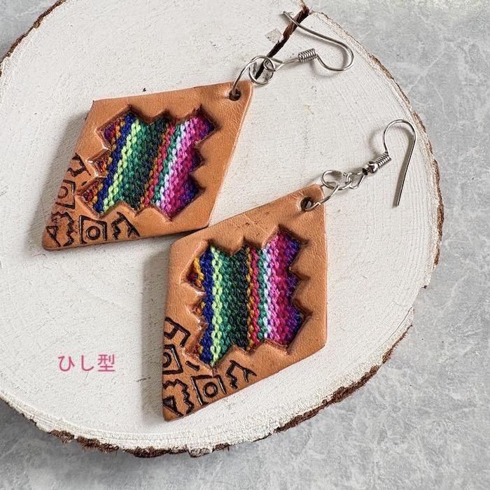 ペルーの民族布と合皮のアンデスの雰囲気たっぷりのピアス